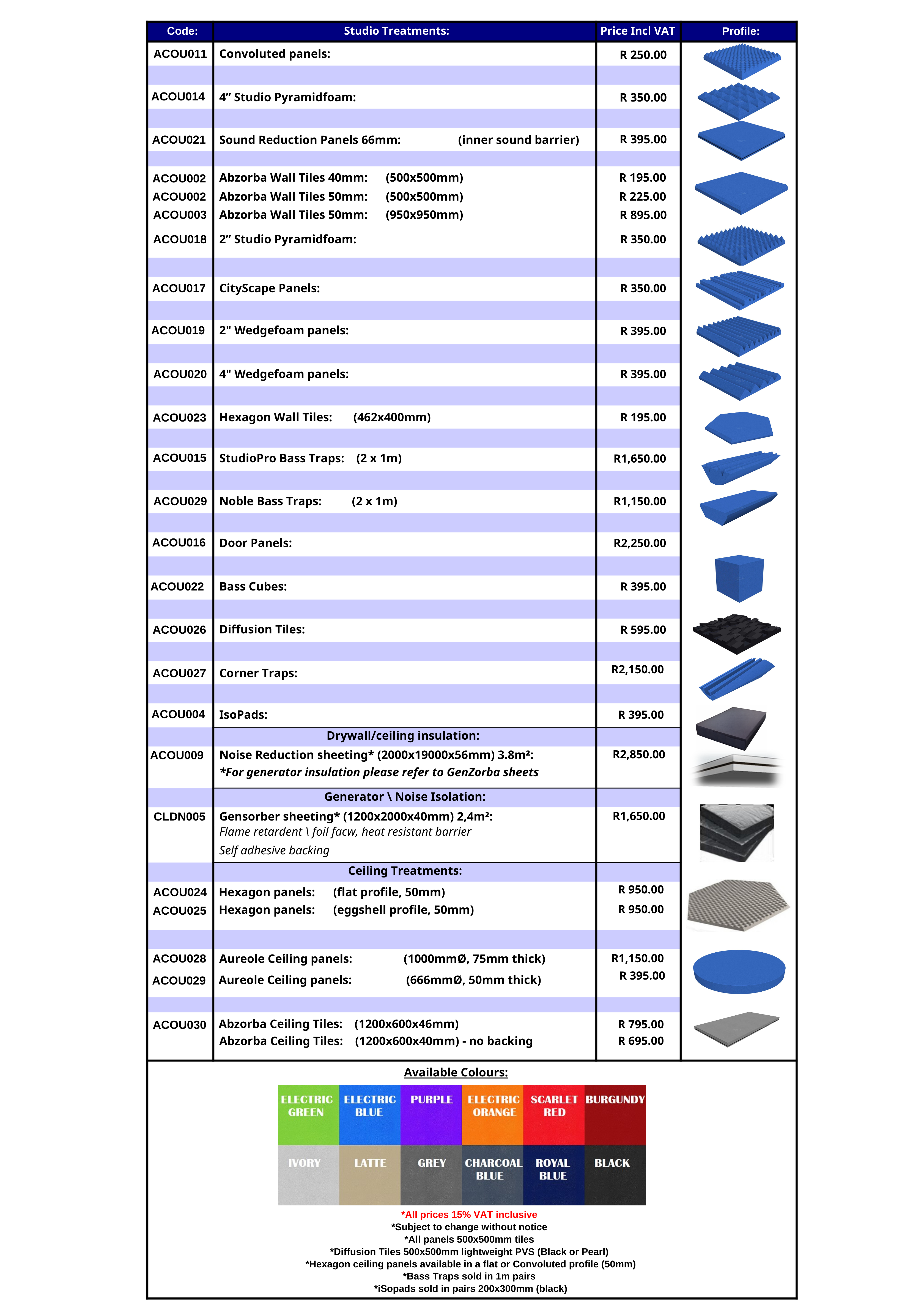 Please note, Acoustic Panels are manufactured upon order and can take approx 10 - 14 days to be available. Some options will be in stock so please contact us via whatsapp on 083 468 0280 or mail: salesonline@leegold.co.za for any queries.