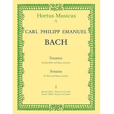 Although these two sonatas composed by the young Carl Philipp Emanuel Bach clearly reflect the influence of his famous father, they also herald the unconventional and strikingly expressive preclassical composer. Besides character variations, Bach also wrote variations with large intervallic leaps in his minuets, thus offering flutists a chance to enjoy a delightfully iridescent play of tone colours. - Contents: Sonata in G major Wq 123 [Bach, Carl Philipp Emanuel]; Sonata in E minor Wq 124 [Bach, Carl Philipp Emanuel]