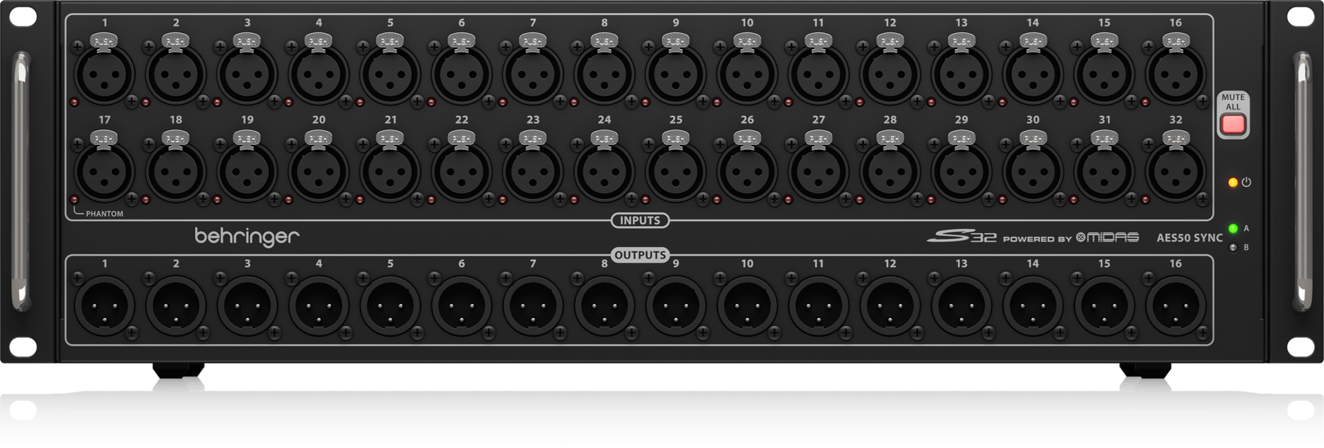 The S32 provides 32 Midas-designed remote-controllable mic preamps, plus 16 balanced analog XLR returns at the stage end – and all it takes is a single Cat 5e cable. While Klark Teknik, the industry-leader in high-end digital audio processing, invented the AES50 SuperMAC technology that made it all possible – our superb scale of production makes the S32 so very affordable.
