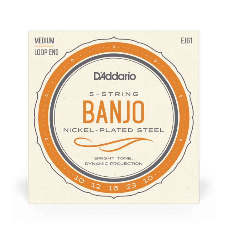 EJ61 is a medium gauge string set for 5-string banjo, utilizing high carbon, tin-plated steel wire with a nickel-plated steel wound string.