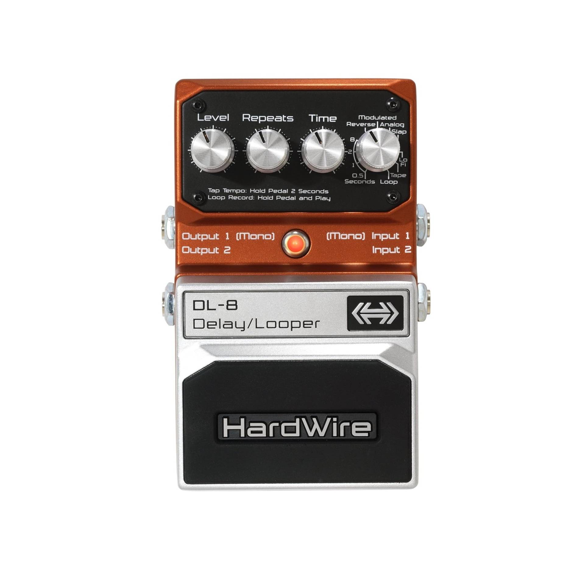 The HardWire DL-8 Delay/Looper is a true delay powerhouse in a single stompbox footprint. Augment your performances with a rich and diverse palette of delays including Reverse, Modulated, Analog, Slapback, Lo Fi, and Tape. Dial in from an impressive delay range (from 15 milliseconds to 8 seconds) or Loop in true stereo for up to 20 seconds. And the built-in Tap Tempo function and Tails on/off switch feature will make the DL-8 at home on any pedalboard. As with all HardWire pedals, the DL-8 is crafted from premium all-metal components to perform night after night, tour after tour.