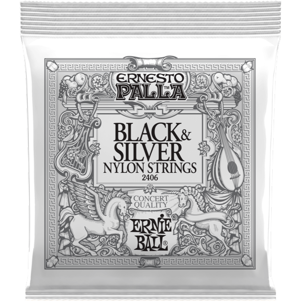 Ernie Ball Ernesto Palla concert quality classical guitar treble strings are made of black nylon monofilament. Silver wound basses are made of silver plated copper wrapped around a nylon multifilament core providing a smooth, rich tone. All Ernie Ball strings are precision manufactured to the highest standards and most exacting specs to assure consistency, optimum performance, and long life. Gauges First .028, Second .032, Third .040, Fourth .030, Fifth .036, Sixth .042 - Medium tension