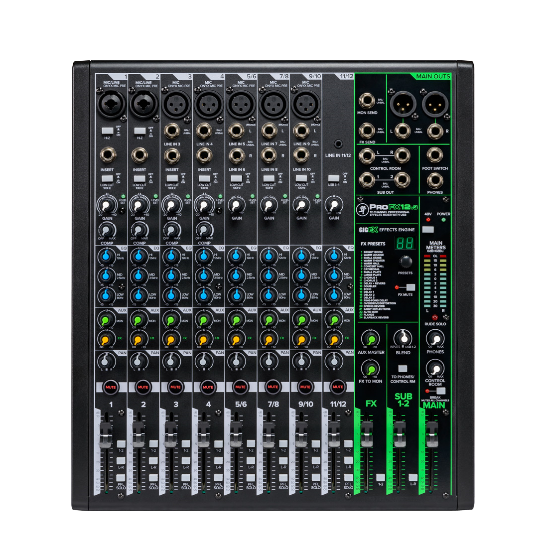 Experience the best-in-class series of professional analog usb mixers with effects. The Mackie ProFX12v3 is a 12-channel mixer that gives recording artists, live performers and content creators a new level of studio-quality performance.