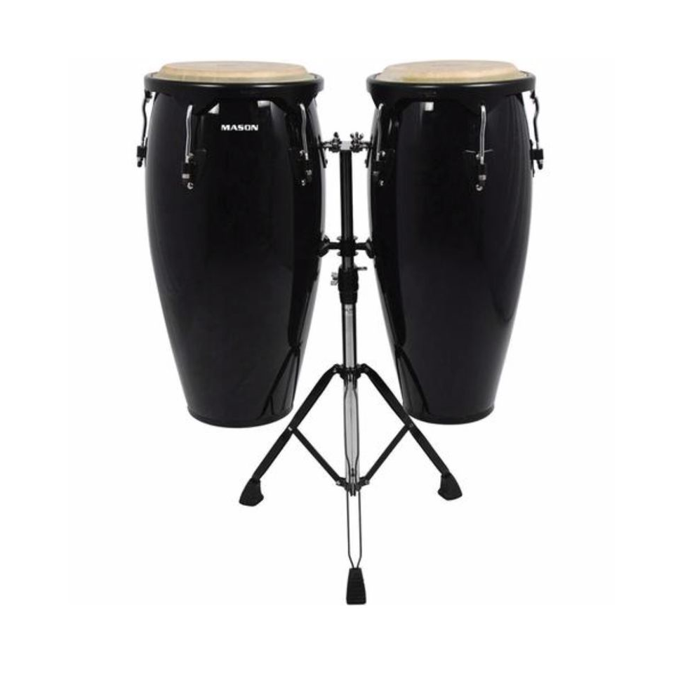 Description Features: - 10" and 11" - Includes stand - Colour: Black What's in the box 2 x Conga drums 1 x Stand