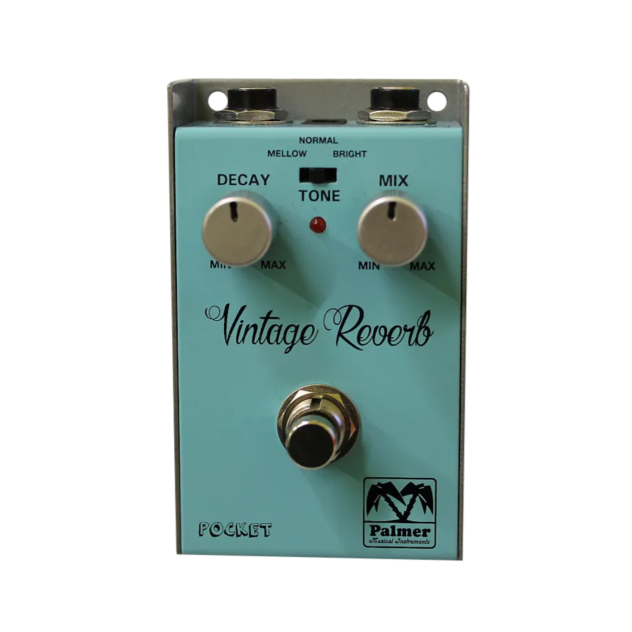 Recreating the classic sounds of a spring reverb unit, the Palmer Vintage Reverb provides extensive control. Decay lets you dial in reverb length from a subtle bounce to cavernous tails, a tone selector adds natural warmth or splashy brightness, and mix blends in the effect with the dry signal. The compact pedal features a heavy-duty footswitch and runs on a 9V battery or optional power adapter, e.g. Palmer PW9V.