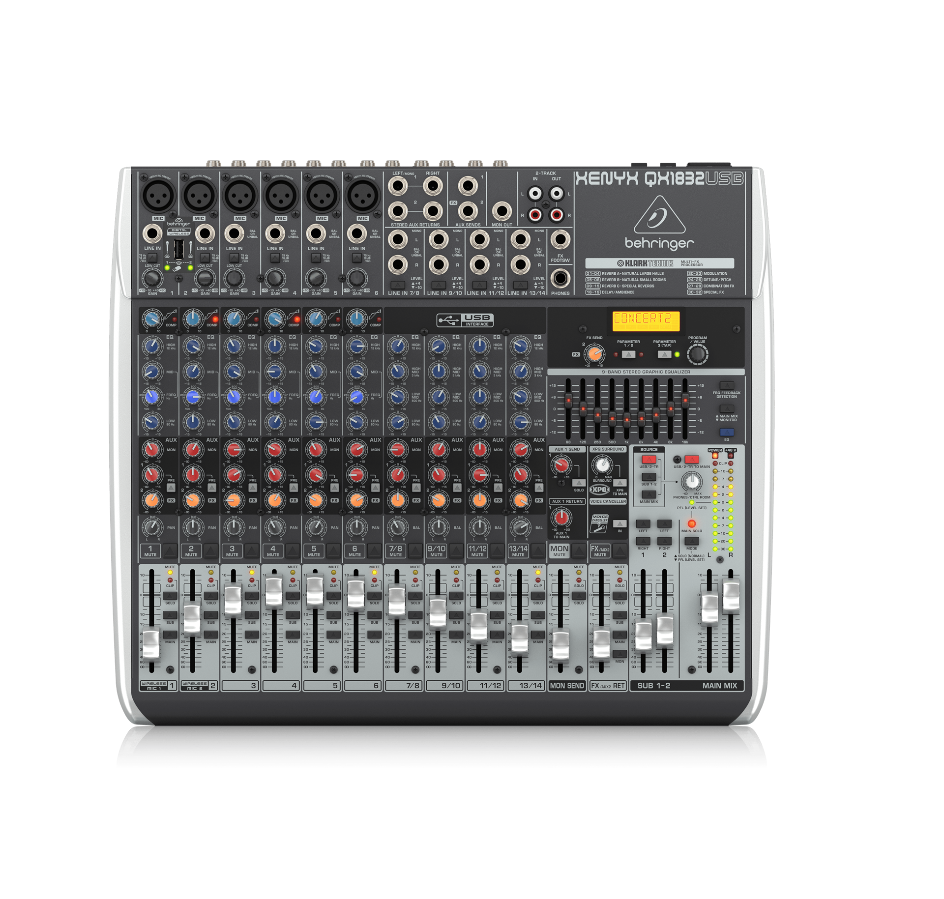 6 state-of-the-art, phantom-powered XENYX Mic Preamps comparable to stand-alone boutique preamps