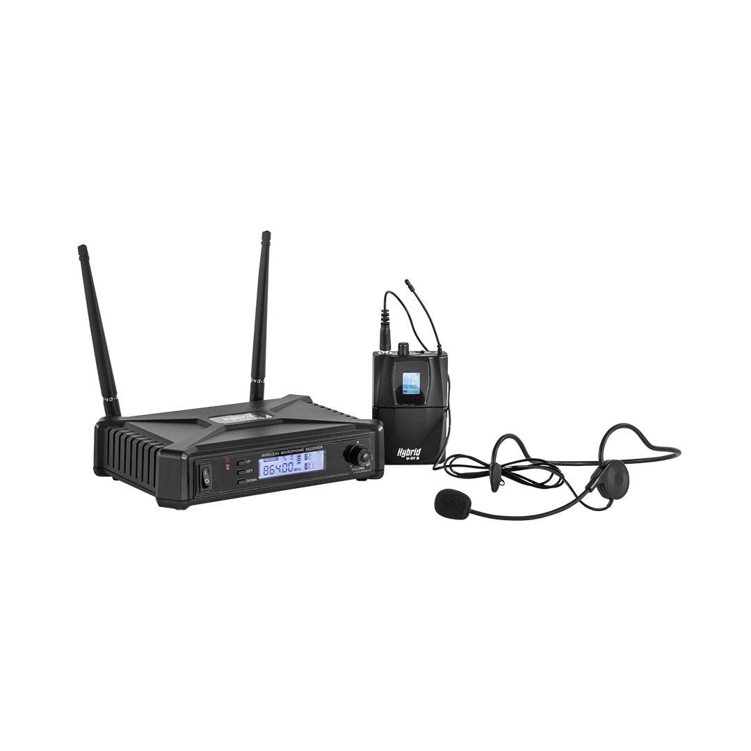 The Hybrid U-SV B is a variable channel, UHF, headset transmitter-receiver microphone system with excellent features. These include 20 selectable frequencies, Infra-red synchronization between transmitters and receiver, balanced line output as well as a volume control which make it ideal for most applications.