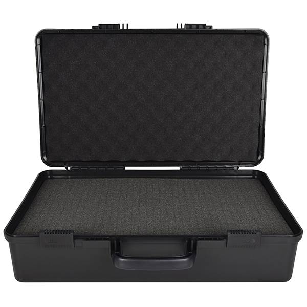 Moulded ABS carry cases for protecting equipment such as mixers, wireless microphones and audio processors. Inside segmented foam squares can be removed to suit the shape of the equipment and provide a close-fitting protective cushion. Integral carry handle and slide locking latches keep the case securely closed during transit.