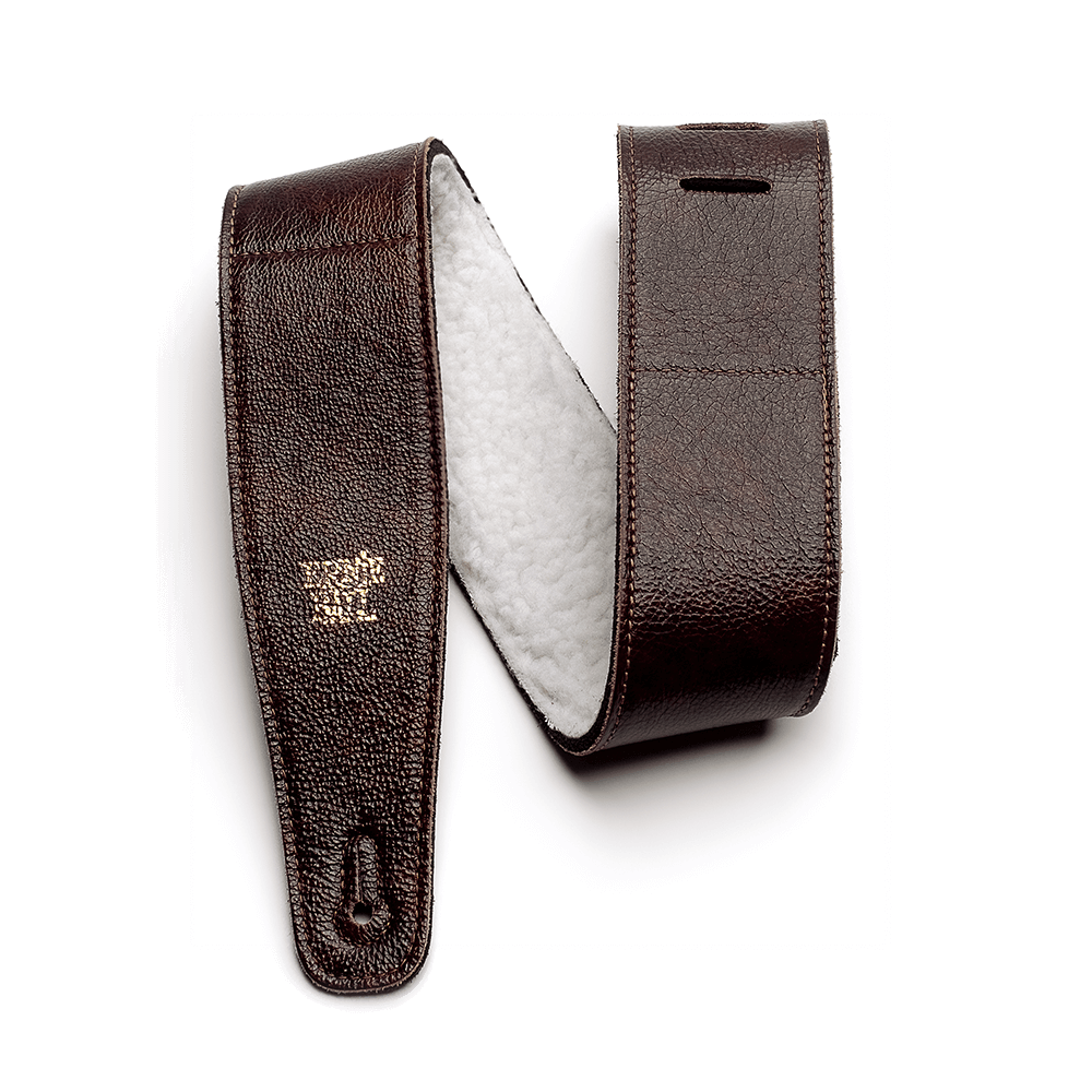 The Ernie Ball Chestnut Italian leather strap features "Fur Sherpa" synthetic fur lining which helps conform to the shoulder area allowing for added comfort. All leather straps are 2.5" wide and imported from Futura Leathers in Vicenza, Italy featuring a deluxe top grain with a fabulously soft feel and their uniform, plain colors offer a stylish, timeless quality. Adjustable lengths from 41"-52".