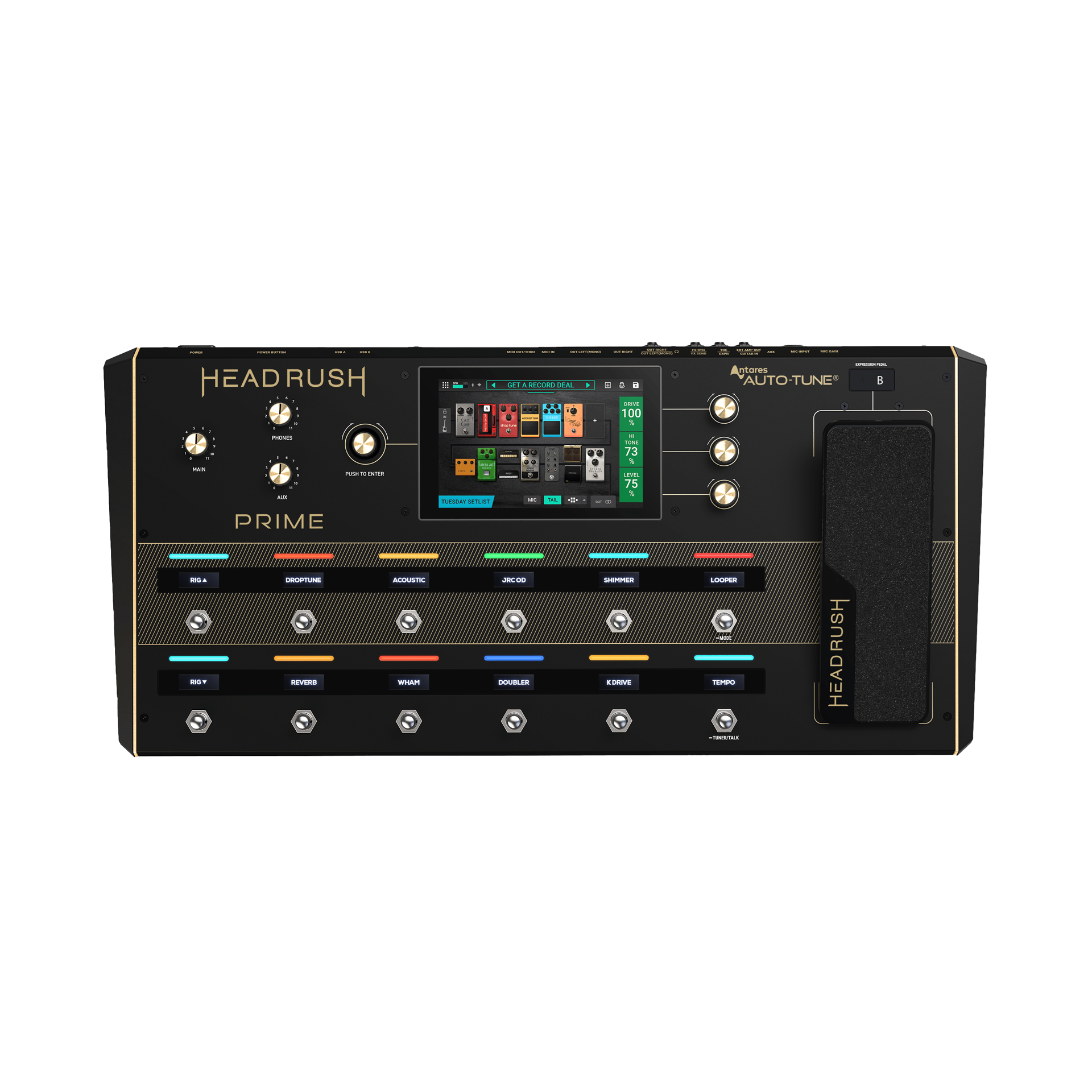 eaturing an advanced multi-core processor with a huge library of on-board guitar FX, amp, cab and microphone emulations, smart amp/pedal cloning and IR loading, best-in-class looper, and a full suite of vocal FX (including the industry-standard Antares Auto-Tune), the HeadRush® Prime is the most powerful, versatile, and realistic-sounding floorboard FX processor ever. The high resolution and ultra-responsive 7-inch display enables you to touch, swipe, and drag-and-drop to instantly create and edit your rigs in an unprecedentedly easy-to-use way.