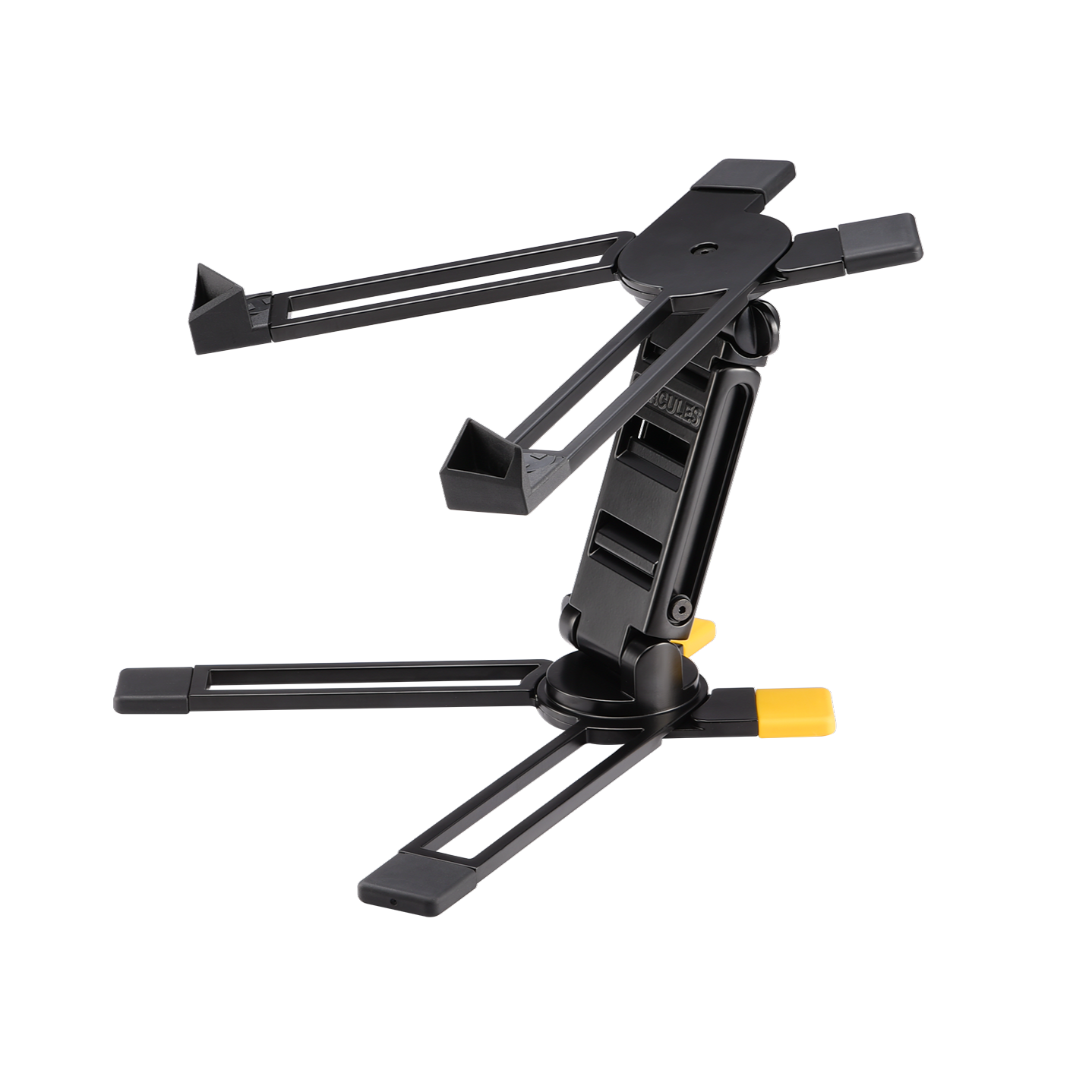 The Hercules DG400BB is a sturdy, adjustable laptop stand with a one‑piece folding design and included carry bag, built to support laptops and DJ gear up to 10 kg (22 lbs) comfortably for studio, stage, or home use.