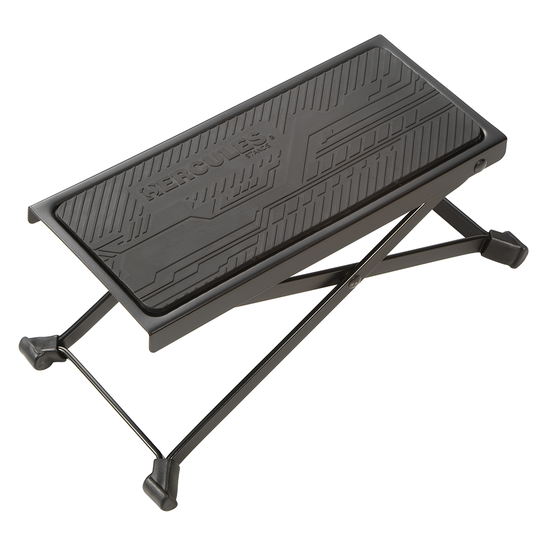 The HERCULES Guitar Foot Rest FS100B has a large foot plate lined with solid rubber for non-slip support.