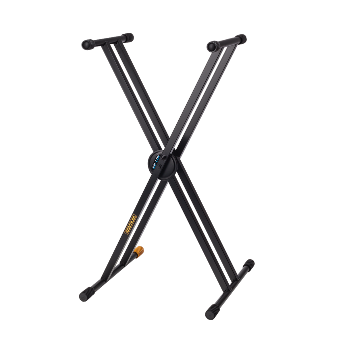 The HERCULES Double X Keyboard Stand KS120B features the patented EZ-LOK, 5 height settings, and heavy duty steel construction.