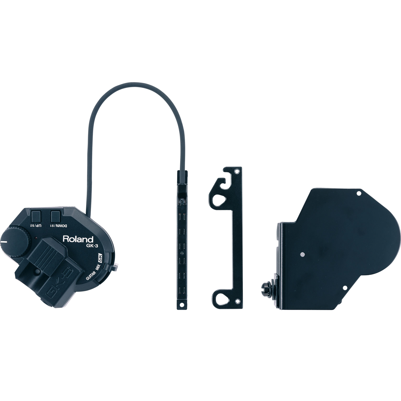 The GK-3 Divided Pickup attaches to any steel-stringed electric — no drilling necessary — and delivers accurate performance data to guitar synthesizers such as Roland’s popular GR-55. The GK-3’s slim-line design enables ideal placement on the guitar.