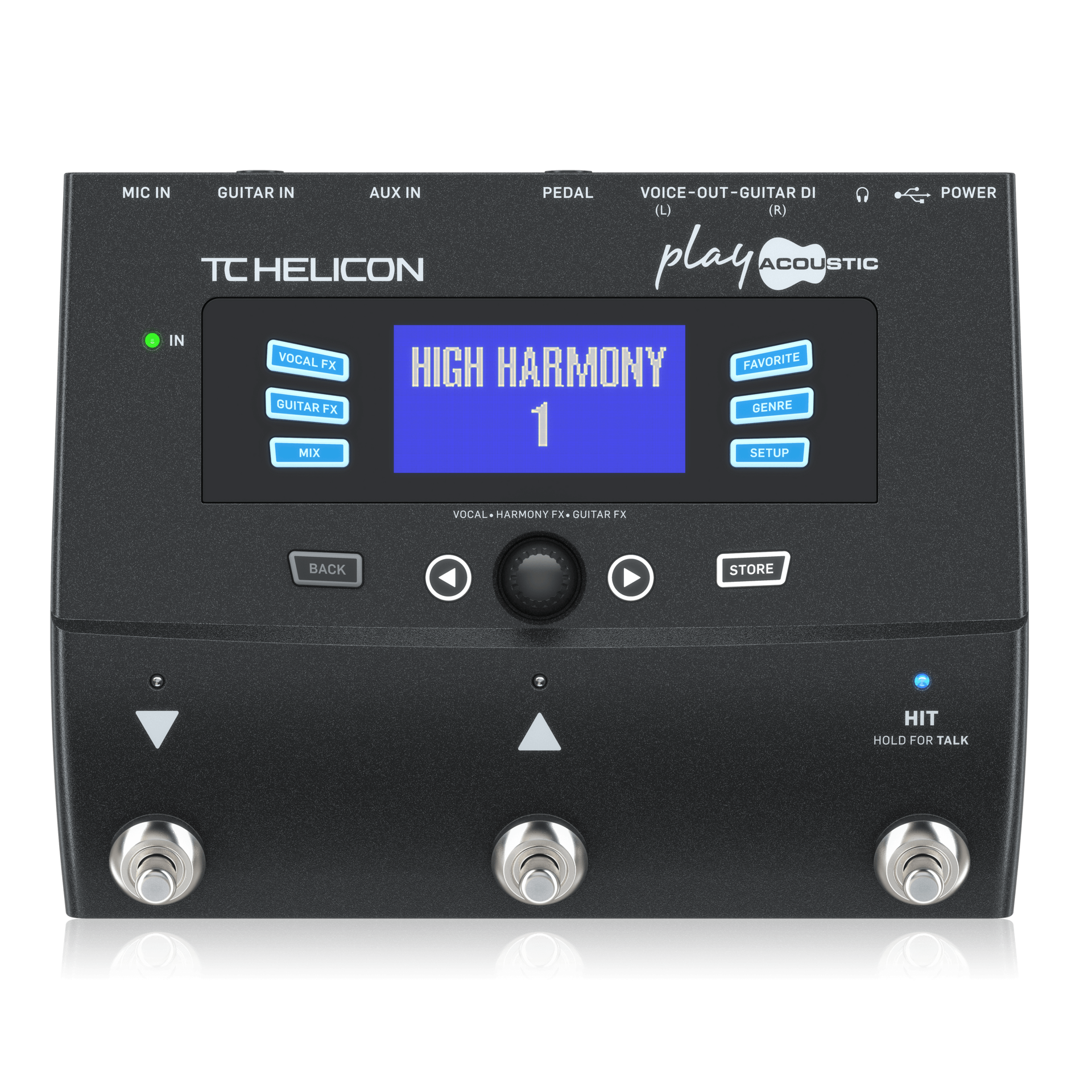 3-button stompbox combines studio quality vocals, pristine guitar sounds and creative looping