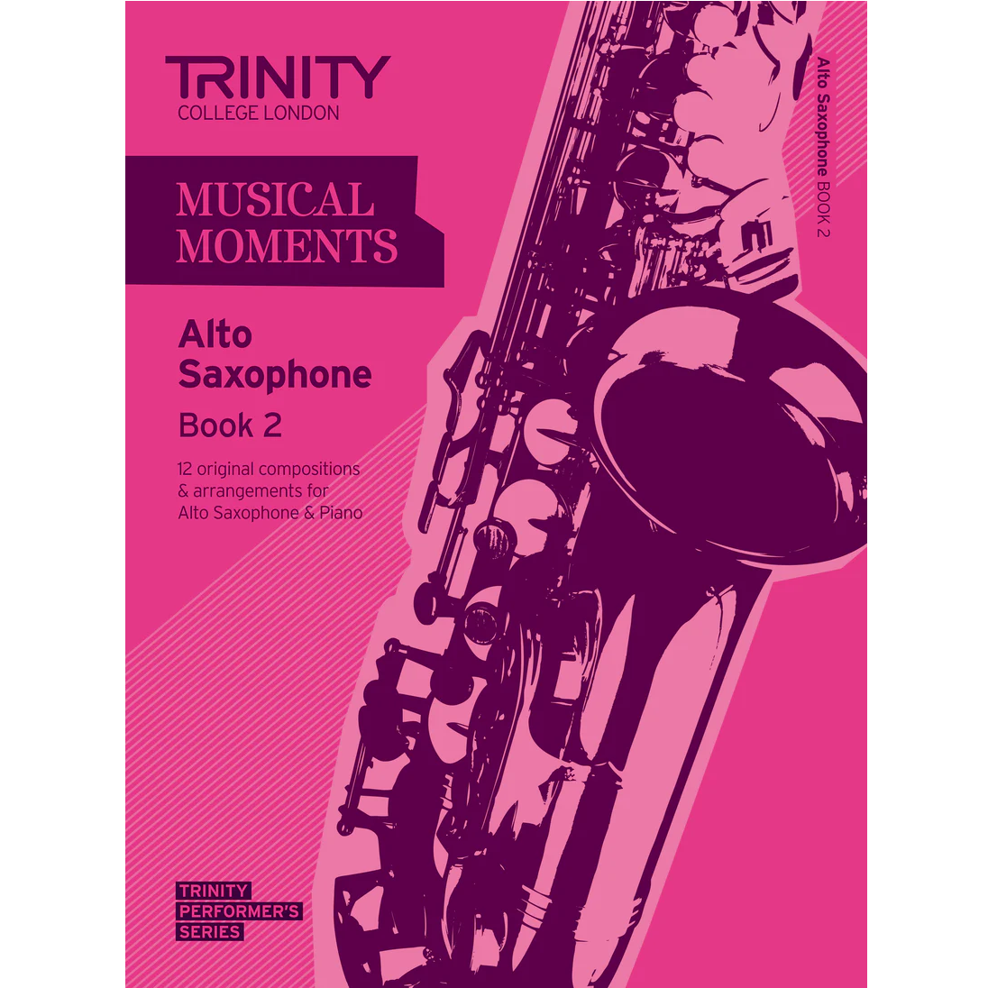 Trinity Musical Moments Alto Saxophone Book 2: 12 pieces for Alto Saxophone and Piano including new compositions by Alan Bullard Andy Hampton Chris Gumbley Karen Street Tim Watts and Jeffery Wilson and newly commissioned arrangements. Carefully selected to ensure technical difficulty is stepped progressively from beginner at Book 1 to intermediate standard at Book 5 this series of books encourages exploration of a wide range of musical genres at each level.
