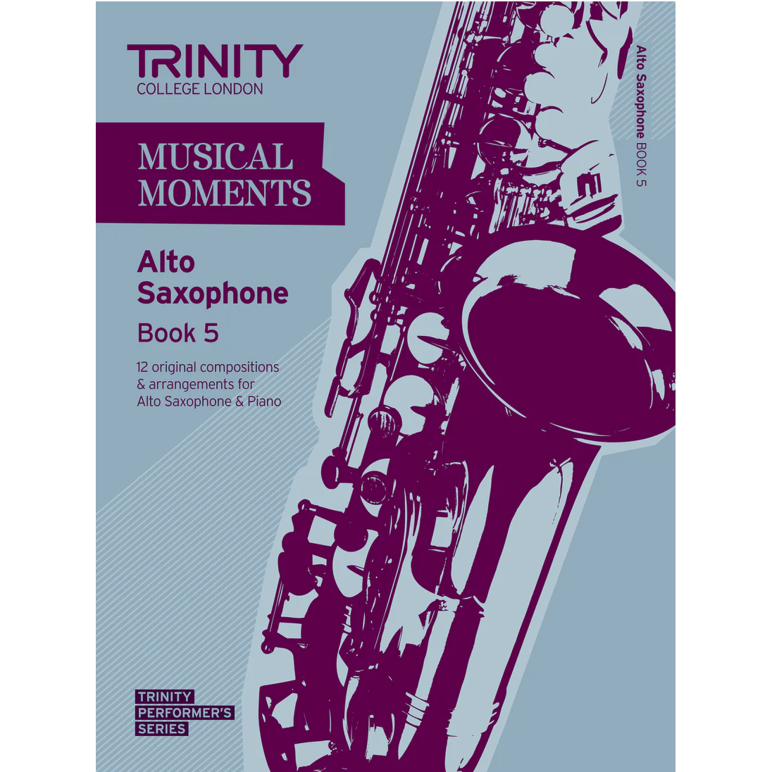 Trinity Musical Moments Alto Saxophone Book 5: 12 pieces for Alto Saxophone and Piano including new compositions by Rob Buckland Andy Firth Malcolm Miles Andy Panayi and Andy Scott and newly commissioned arrangements. Carefully selected to ensure technical difficulty is stepped progressively from beginner at Book 1 to intermediate standard at Book 5 this series of books encourages exploration of a wide range of musical genres at each level.