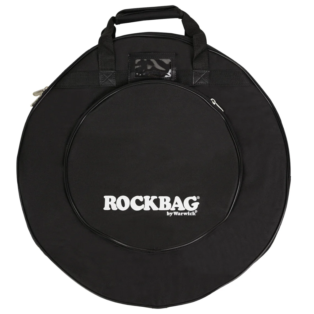 The Warwick RockBag RB22440B is a 22-inch Student Line cymbal bag made from black, water-resistant RokTex fabric with 5mm padding. It features three internal dividers, a reinforced handle, and an external pocket suitable for 15-inch hi-hats. This durable, budget-friendly bag is designed for easy transport of cymbal sets